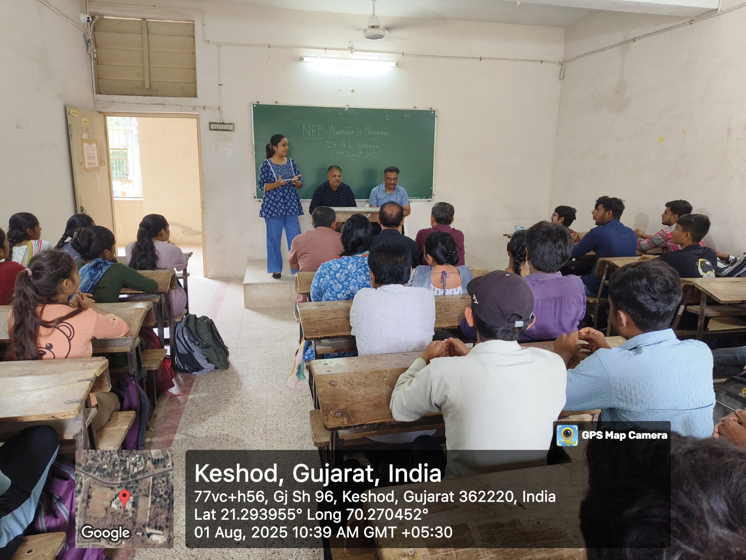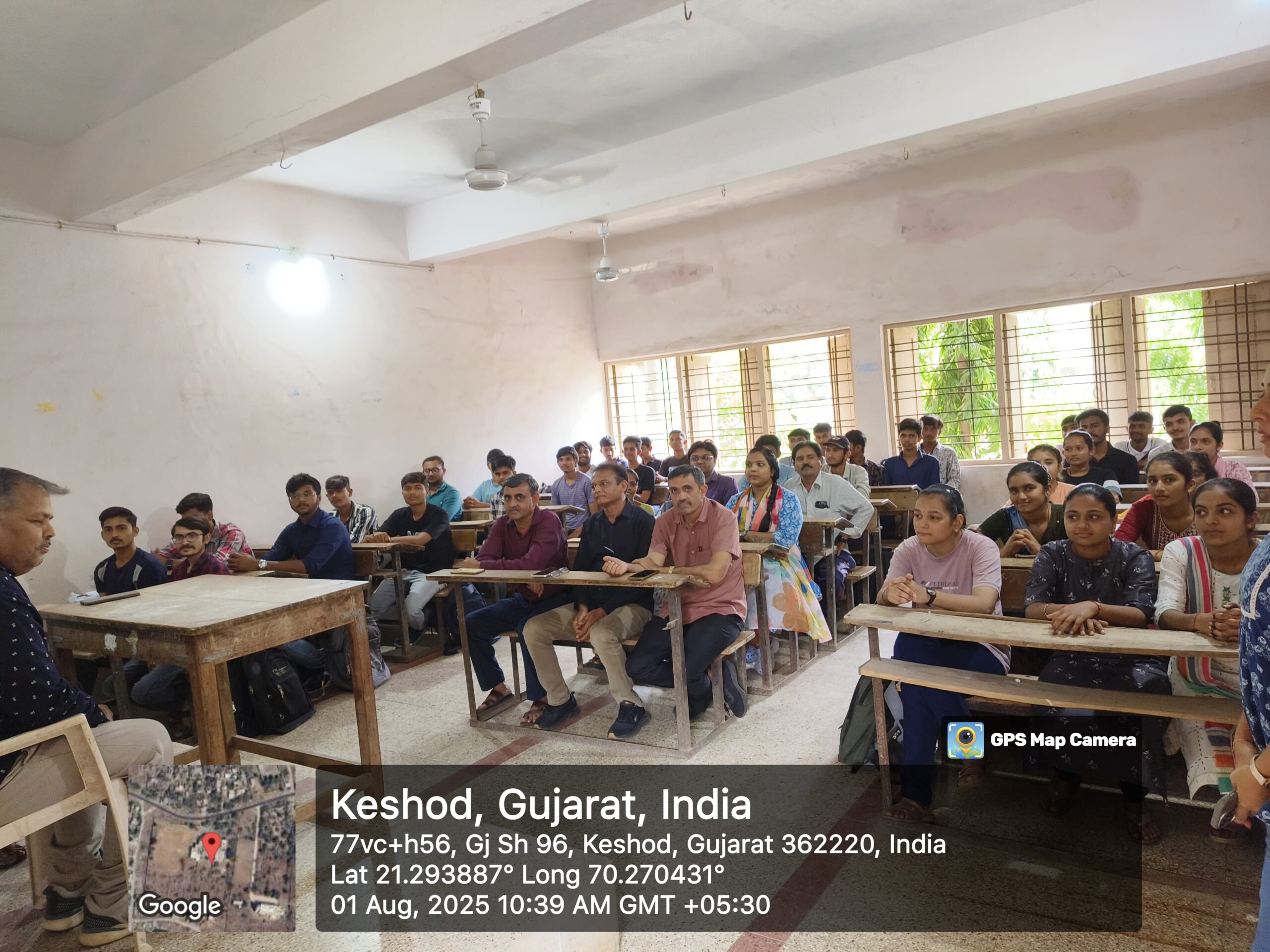 A one-day workshop on Proficiency in English for Gujarati Learners was conducted by Dr. Yogesh Ramani on 1 August 2024 at N.P. Arts and Commerce College, Keshod, with the participation of over 55 students. The workshop aimed to enhance students’ English language skills through scientific and practical learning methods. Dr. Ramani’s interactive teaching style made the session engaging, focusing on grammar, vocabulary building, pronunciation, fluency, and communication skills. Various activities, including brain games, role-plays, and live demonstrations, helped students improve their listening, speaking, reading, and writing (LSRW) skills. The session concluded with a Questions & Answers segment, where students received personalized guidance to overcome their language challenges. The workshop was highly appreciated by the participants, as it boosted their confidence and provided them with effective strategies to improve their English proficiency.