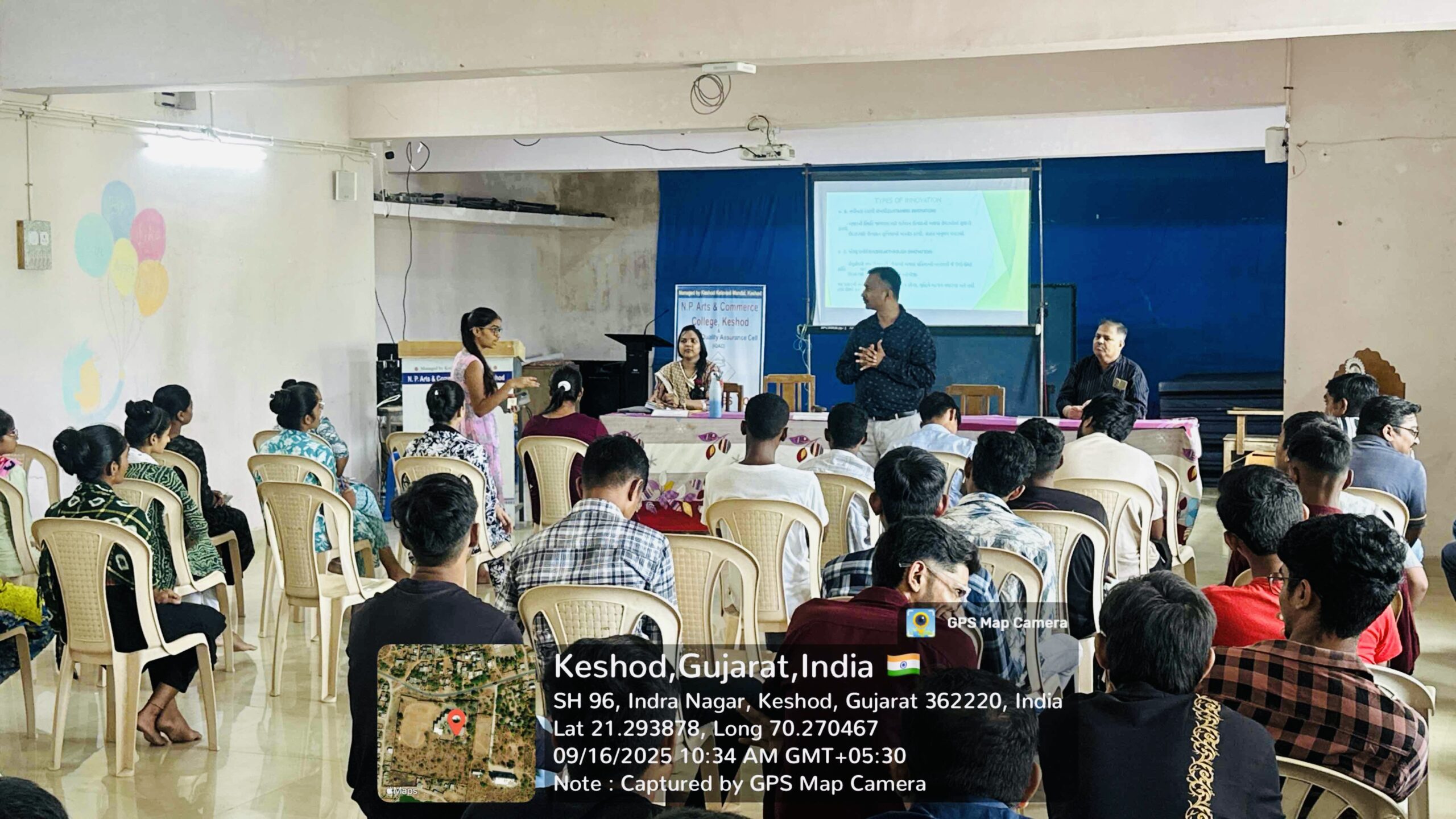 The World Entrepreneurs’ Day was celebrated with great enthusiasm on 22 August 2025 at N. P. Arts and Commerce College, Keshod, under the auspices of the Innovation Club. The event was organized with the objective of fostering entrepreneurial spirit, motivating students towards innovation, and highlighting the importance of entrepreneurship in national development. The Program was graced by the distinguished presence of Shri Mukeshbhai V. Baldha, who delivered an inspiring lecture as the chief speaker of the day. His address emphasized the role of creativity, risk-taking, and perseverance in building successful enterprises. He also shared valuable insights from his own experiences that deeply motivated the students. The event was conducted under the coordination of Dr. Rashmita B. Vishrama, Innovation Club Coordinator, who successfully managed the planning and execution of the program. The guidance and support of Dr. S. K. Pambhar, Principal, and Dr. R. H. Parmar, Vice Principal, were instrumental in making the celebration a success. The teaching and non-teaching staff members actively participated in the program and encouraged students to embrace innovation and entrepreneurship as future career opportunities. The celebration concluded with a vote of thanks, appreciating the efforts of the organizing committee and the enthusiastic participation of students. The World Entrepreneurs’ Day Celebration 2025 thus proved to be a remarkable and inspiring event, strengthening the vision of the college to promote innovation, skill development, and entrepreneurial culture among its learners.
