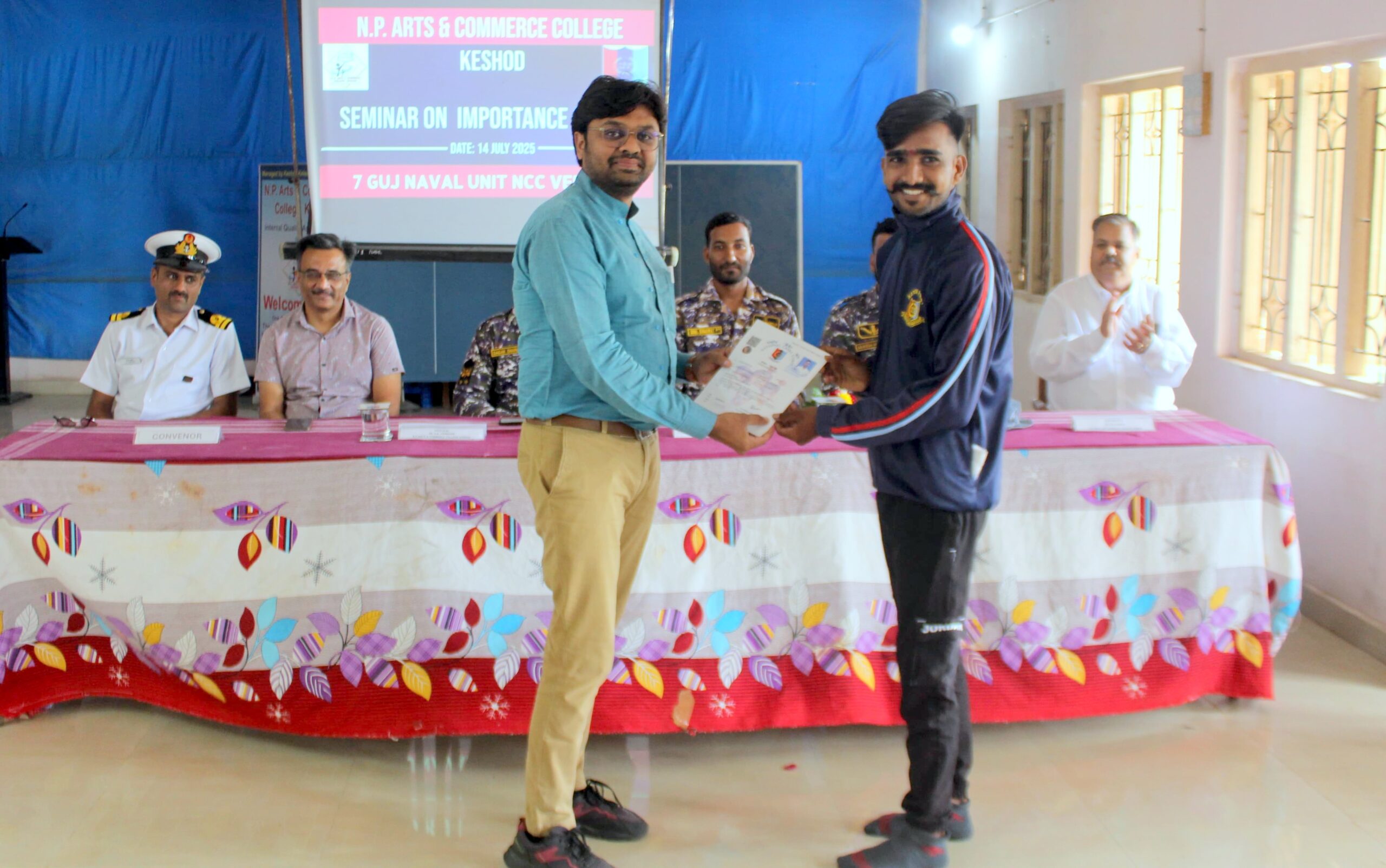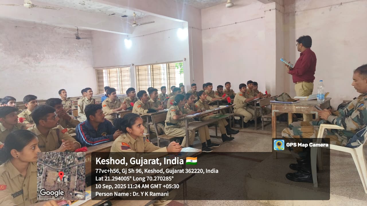 N.P. Arts and Commerce College, Keshod proudly runs an active NCC unit under the 8 Gujarat Battalion NCC, Junagadh, which comes under the NCC Group Headquarters, Rajkot and is part of the Gujarat, Dadra Nagar Haveli, Daman & Diu Directorate. The total strength of the unit is 55 cadets, including both Senior Division (SD) and Senior Wing (SW). The Associate NCC Officer (ANO) of the unit is Dr. Yogesh K. Ramani, who has been guiding and training the cadets with dedication and discipline. For any correspondence or queries, you may contact us via email at: npcnccarmy@gmail.com.